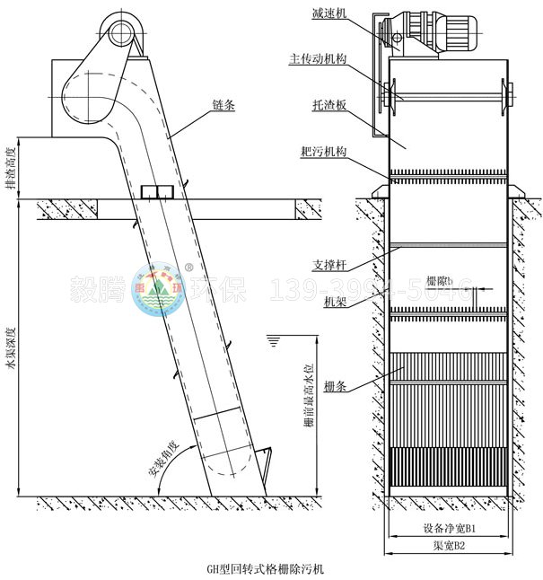 ?齒耙柵后下行,柵前上行撈渣,不會將柵渣帶入水下,撈渣徹底。